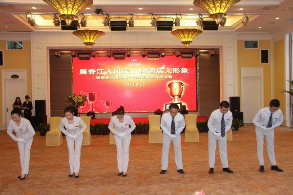 9月25日,“展香江人風采,樹酒店人形象”錦繡香江酒店第一屆員工服務禮儀大賽在錦繡宴會廳舉行。