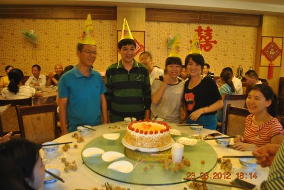 美景寄情思,再美的風(fēng)景也需豐富的情感去襯托。當(dāng)鄉(xiāng)間炊煙裊裊的時候,當(dāng)所有同事都聚齊在餐廳的時候,點(diǎn)點(diǎn)如星光的燭光亮起,伴隨著生日歌,幾個同事將蛋糕緩緩?fù)瞥觥U坡曧懫,燭光下映襯著一張張笑臉格外親切。這是公司組織大家為本月過生日的同事進(jìn)行慶祝生日會。當(dāng)壽星們吹滅蠟燭之時,大家舉杯慶祝幾位壽星之際,也禁不住慶幸生活在香江這個大家庭中,“香江是溫馨的家園”,只有把員工當(dāng)親人的公司才值得我們信賴依靠、奉獻(xiàn)與努力。喝下美酒,品位其中甘甜的同時,我們也祝福著香江集團(tuán)能越來越好,因?yàn)樗o我們帶來的感動太多了!