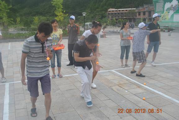 群山間開辟場地,成為我們拓展訓(xùn)練的主戰(zhàn)場。訓(xùn)練場上培養(yǎng)的是我們之間的團(tuán)隊(duì)合作、協(xié)同的精神。為此公司為我們精心準(zhǔn)備了“單腳火車跑”、“吸乒乓球賽”、“雙人合作夾球接力賽”等豐富的活動內(nèi)容。