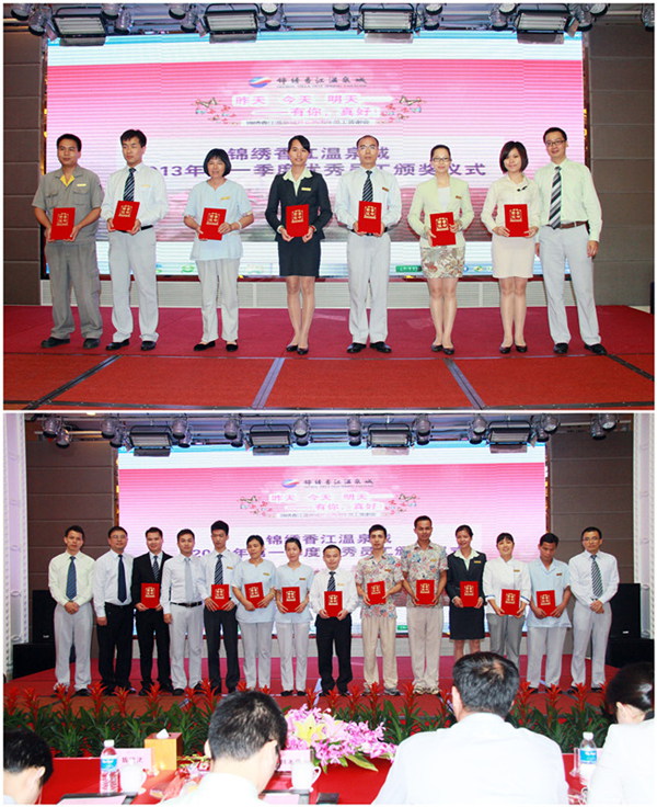 有時候,愛其實是一種感恩,感恩便是用心珍惜曾經(jīng)經(jīng)歷的,把握現(xiàn)在擁有的一切。今天酒店所有員工歡聚一堂,感恩與分享,感謝在錦繡香江溫泉城的日子里我們獲得成長。值此之日,酒店常務(wù)副總經(jīng)理韓本寧先生為第一季度酒店優(yōu)秀員工,各部門負(fù)責(zé)人為第一季度部門優(yōu)秀員工頒獎,感謝在錦繡香江溫泉城每一個崗位上默默付出的同仁。