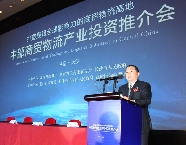 7月14日,由湖南省商務(wù)廳、湖南省工商業(yè)聯(lián)合會(huì)、長(zhǎng)沙市政府主辦的“中部商貿(mào)物流產(chǎn)業(yè)投資推介會(huì)”在長(zhǎng)沙隆重舉行。十一屆全國(guó)政協(xié)副主席、全國(guó)工商聯(lián)名譽(yù)主席黃孟復(fù)蒞臨現(xiàn)場(chǎng)。湖南省副省長(zhǎng)何報(bào)翔、湖南省政協(xié)副主席張大方、長(zhǎng)沙市市長(zhǎng)胡衡華、開福區(qū)區(qū)委書記李蔚等領(lǐng)導(dǎo)出席會(huì)議并致辭。十屆全國(guó)工商聯(lián)副主席、中國(guó)企業(yè)聯(lián)合會(huì)副會(huì)長(zhǎng)、香江集團(tuán)董事局主席劉志強(qiáng),全國(guó)工商聯(lián)副主席、傳化集團(tuán)董事長(zhǎng)徐冠巨以及阿里巴巴、普洛斯、前海香江金融等企業(yè)領(lǐng)導(dǎo)、全國(guó)各大行業(yè)商協(xié)會(huì)負(fù)責(zé)人近千人出席了推介會(huì)。